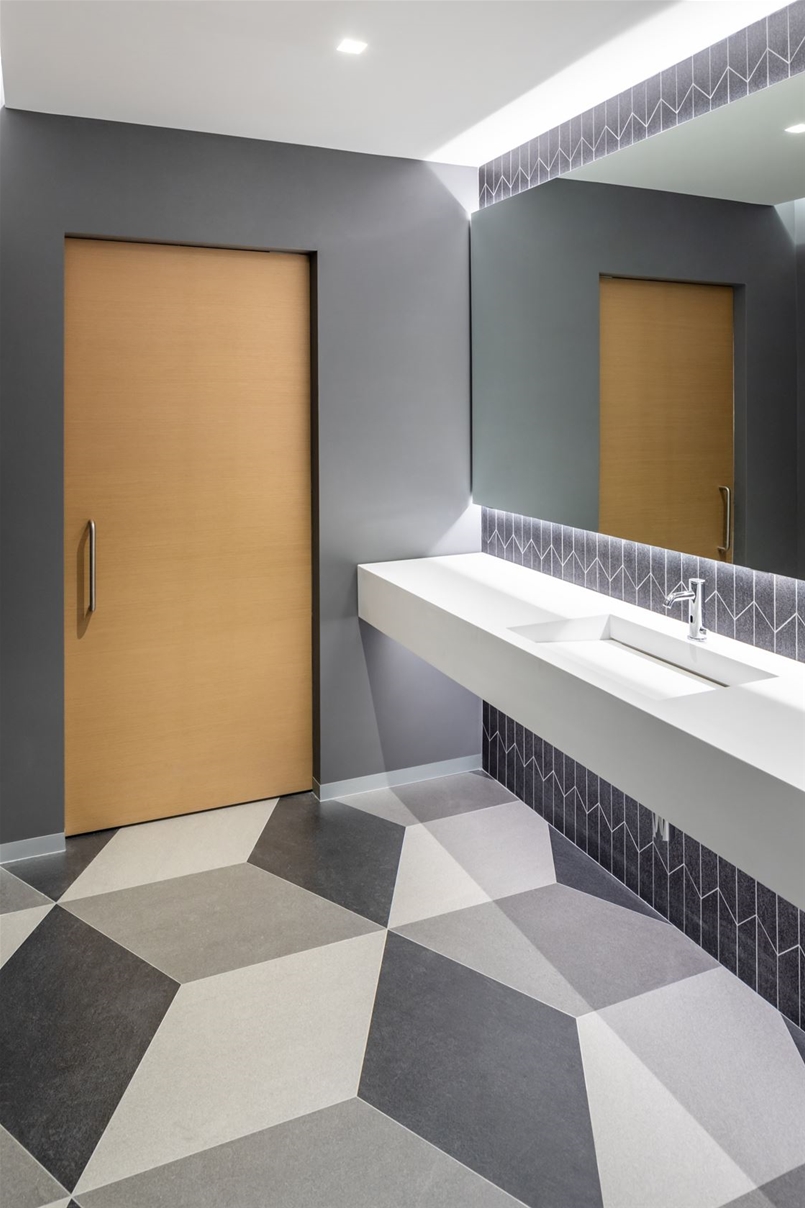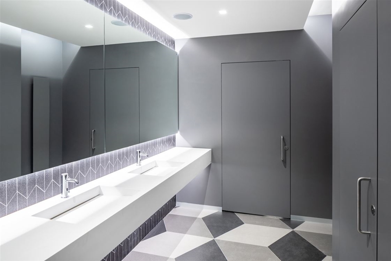 Ne è un esempio Mauk, formato speciale della collezione Basaltina Stone Project in gres laminato, scelta per i rivestimenti dei bagni di un elegante edificio per uffici, in via Principe Amedeo 5 a Milano, nato dalla riqualificazione architettonica di quella che fu, nel 1850, la sede del consolato americano e di proprietà di Covivio, quarta società immobiliare in Europa, quotata all’Euronext di Parigi e su Borsa Italiana.