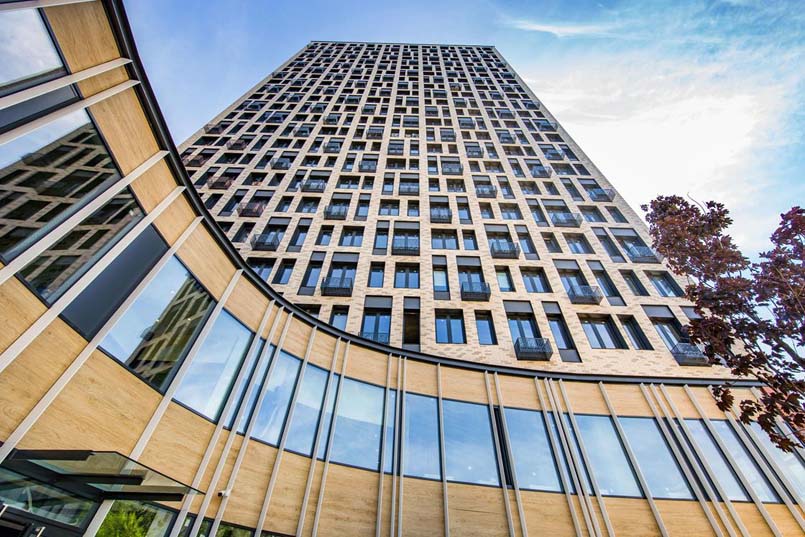È Wood-Stock di Lea Ceramiche la collezione scelta dallo studio di progettazione ADM Architects, per il grande complesso residenziale PerovSky a Mosca. Con 900 mq di prodotto la collezione effetto legno riveste l’intera facciata dell’edificio restituendone un effetto di grande eleganza e matericità. Il materiale scelto dallo Studio fa parte della serie Slimtech, le grandi lastre in gres laminato ultraleggere con spessore ridotto a soli 5,5mm e dal grande formato, fino a 300 x 100 cm che, nel caso della collezione Wood-Stock, sono proposte in doghe di dimensione 300 x 33.3 cm. Ideale per molteplici usi sia a pavimento che a rivestimento, Slimtech svolge una doppia funzione, estetica e funzionale.