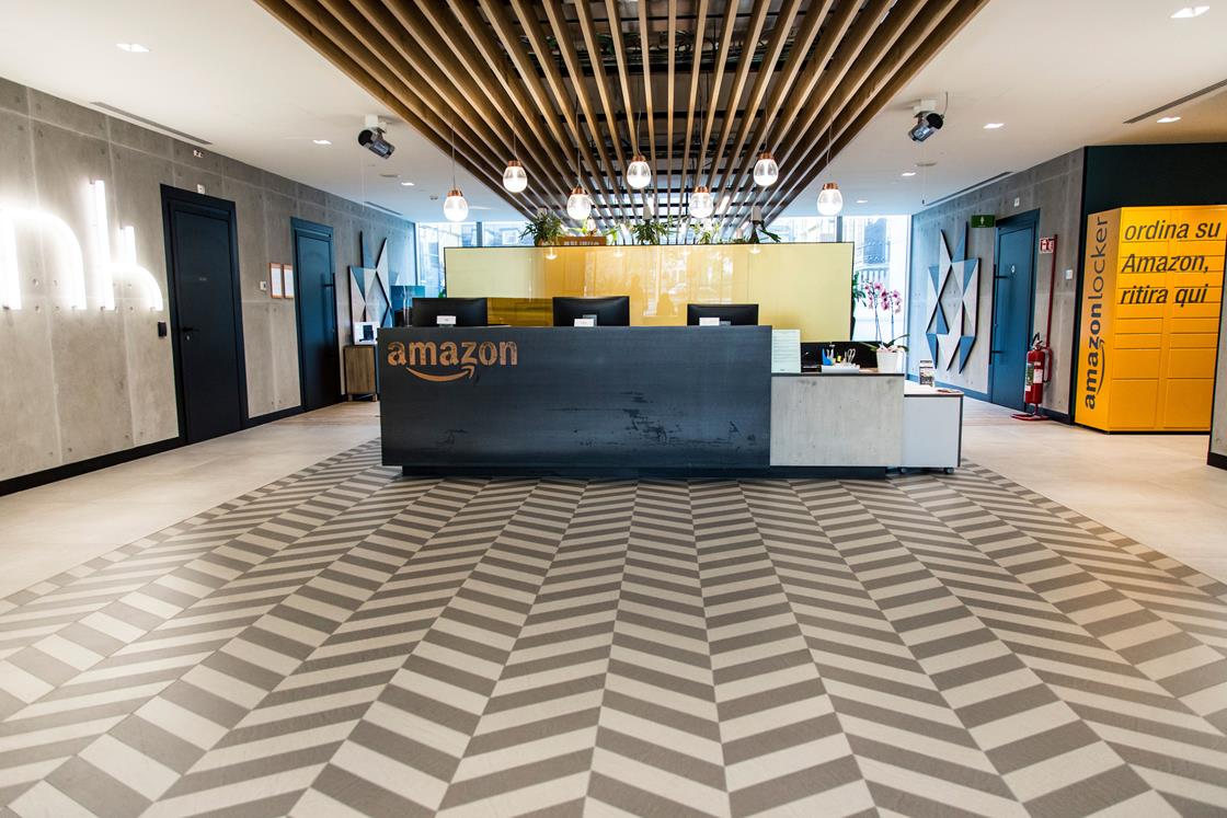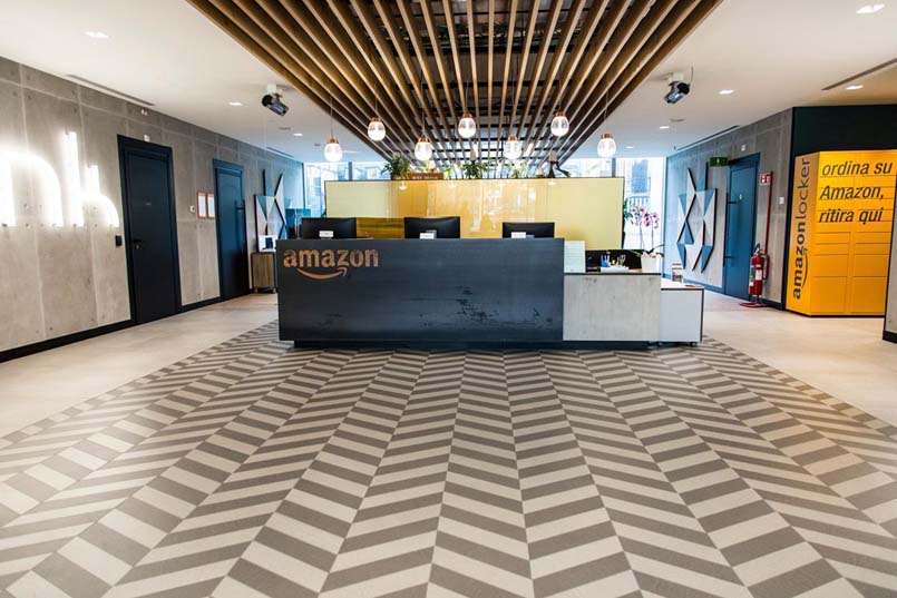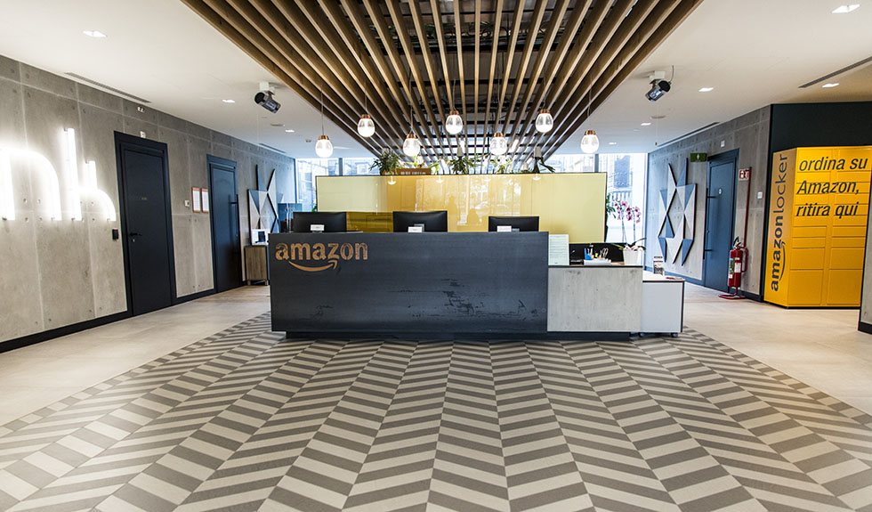 A poca distanza dai grattacieli di Porta Nuova, che già ospitano alcuni dei marchi più importanti dell’hi-tech, è stato inaugurato il quartier generale italiano del più grande colosso statunitense di e-commerce. Qui, i circa quattrocento dipendenti della multinazionale lavorano da novembre 2018 nei due blocchi di quasi diciottomila metri quadrati di superficie riportati a nuova vita.