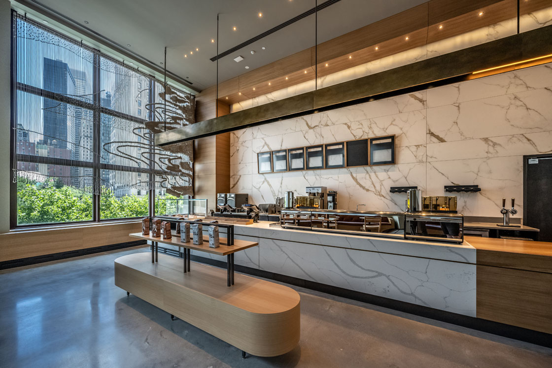 A Brookfield Place, una delle destinazioni più iconiche di New York, sorge il punto vendita della celebre catena statunitense di Starbucks.