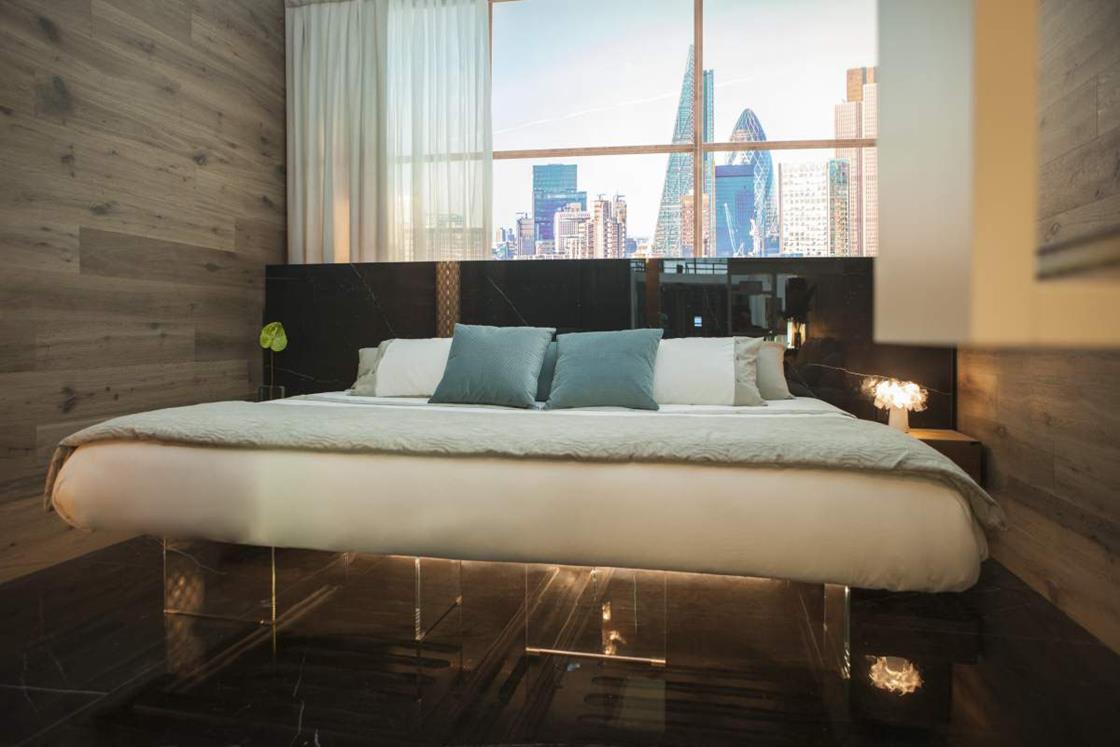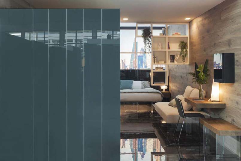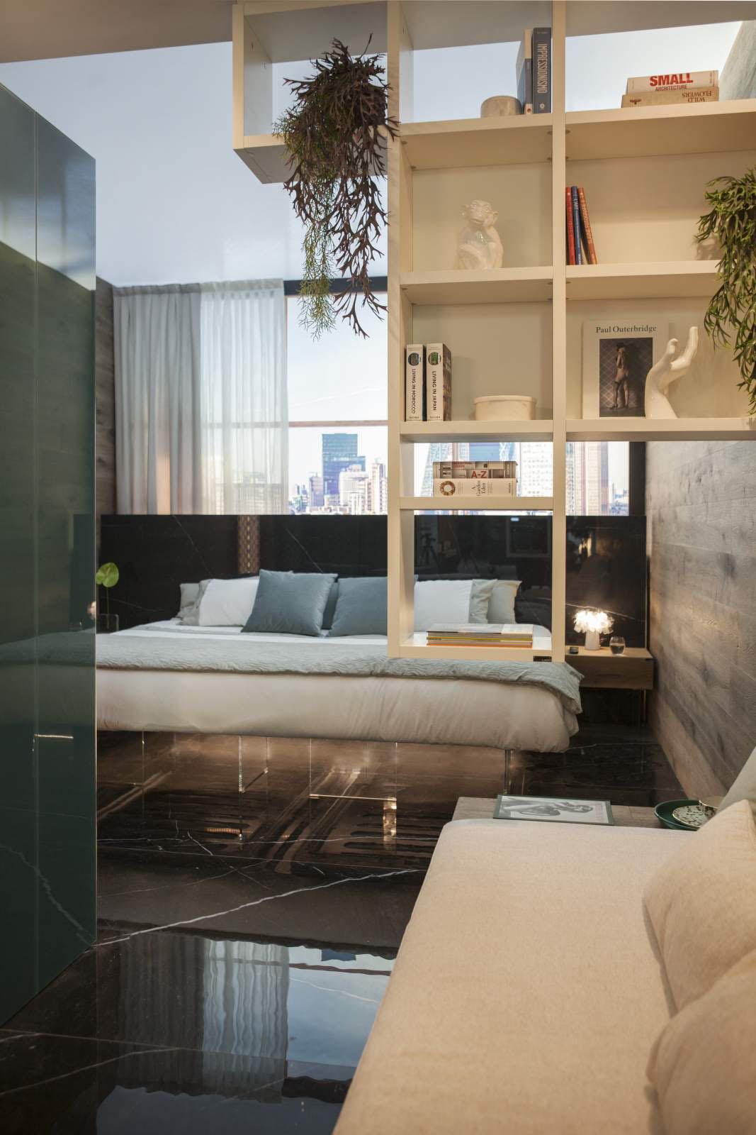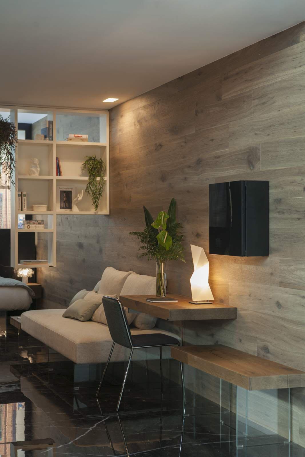 Le superfici della collezione Concreto di Lea Ceramiche hanno personalizzato gli spazi di ‘The BED-Room’, allestimento curato da LAGO Studio al ROOMS-SIA Hotel Design Lab di Rimini, in collaborazione con MAD051.