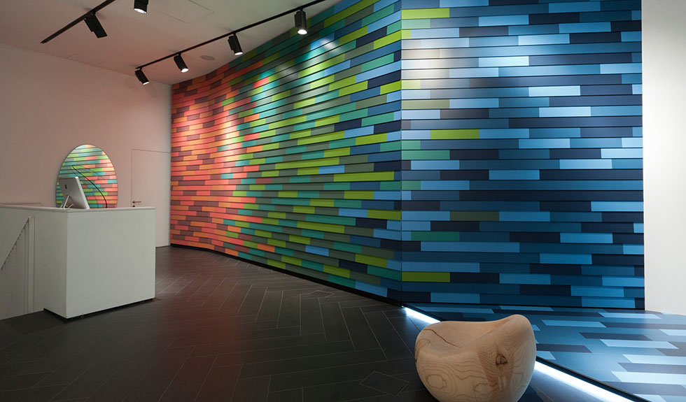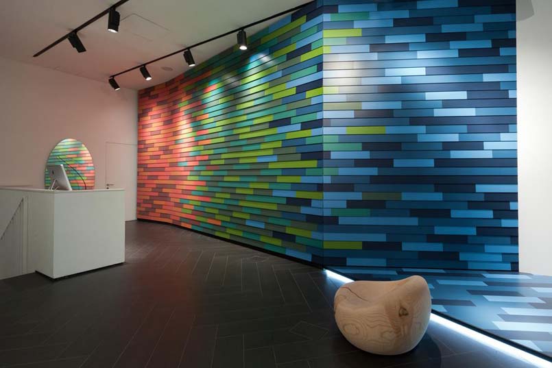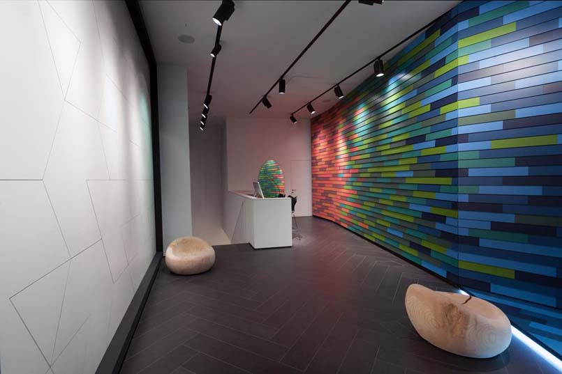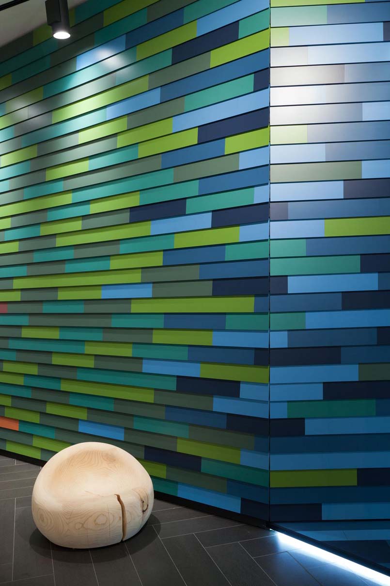 Al piano terra il progetto è firmato da HOK Product Design, studio internazionale di architettura, design e ingegneria, con 24 uffici in America, Europa e Asia. Colore e movimento sono le linee guida che contraddistinguono l’installazione.
