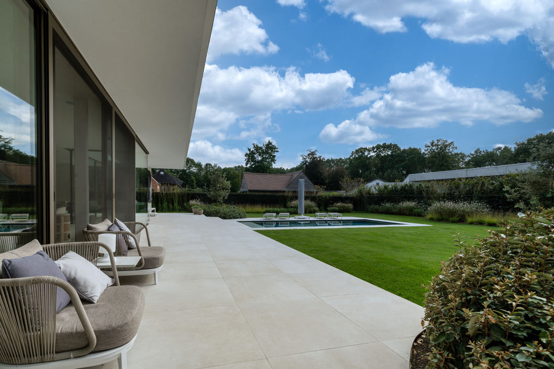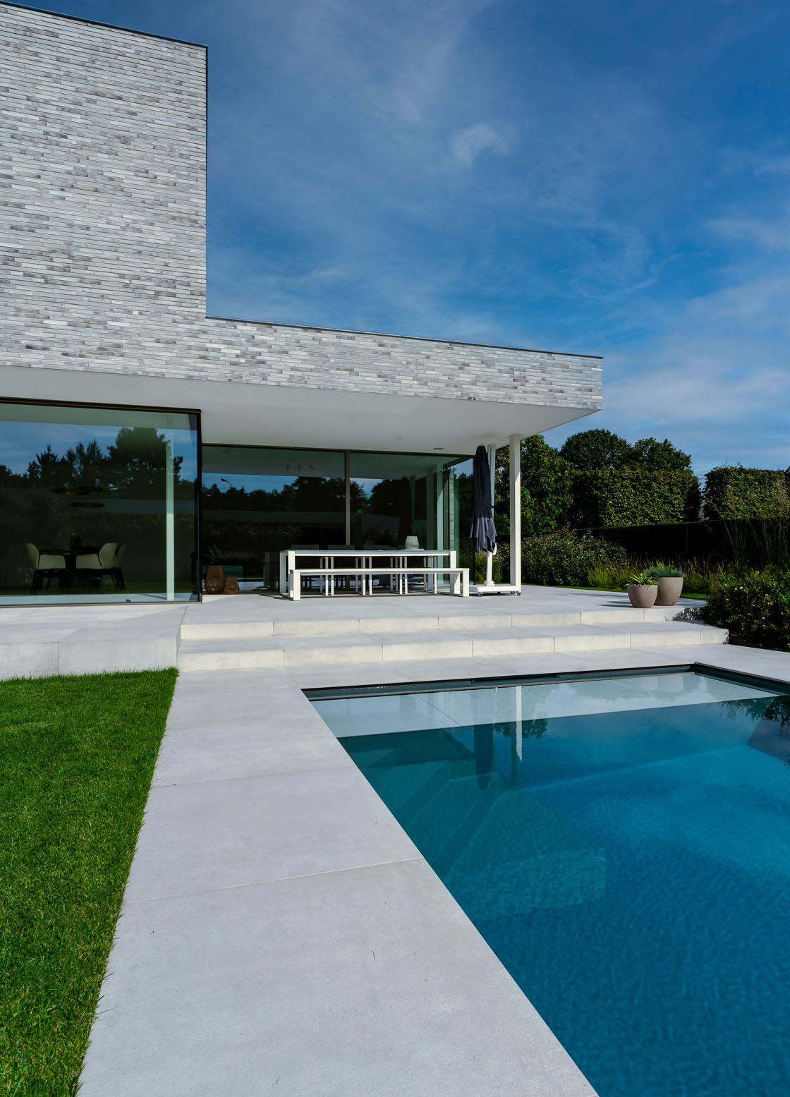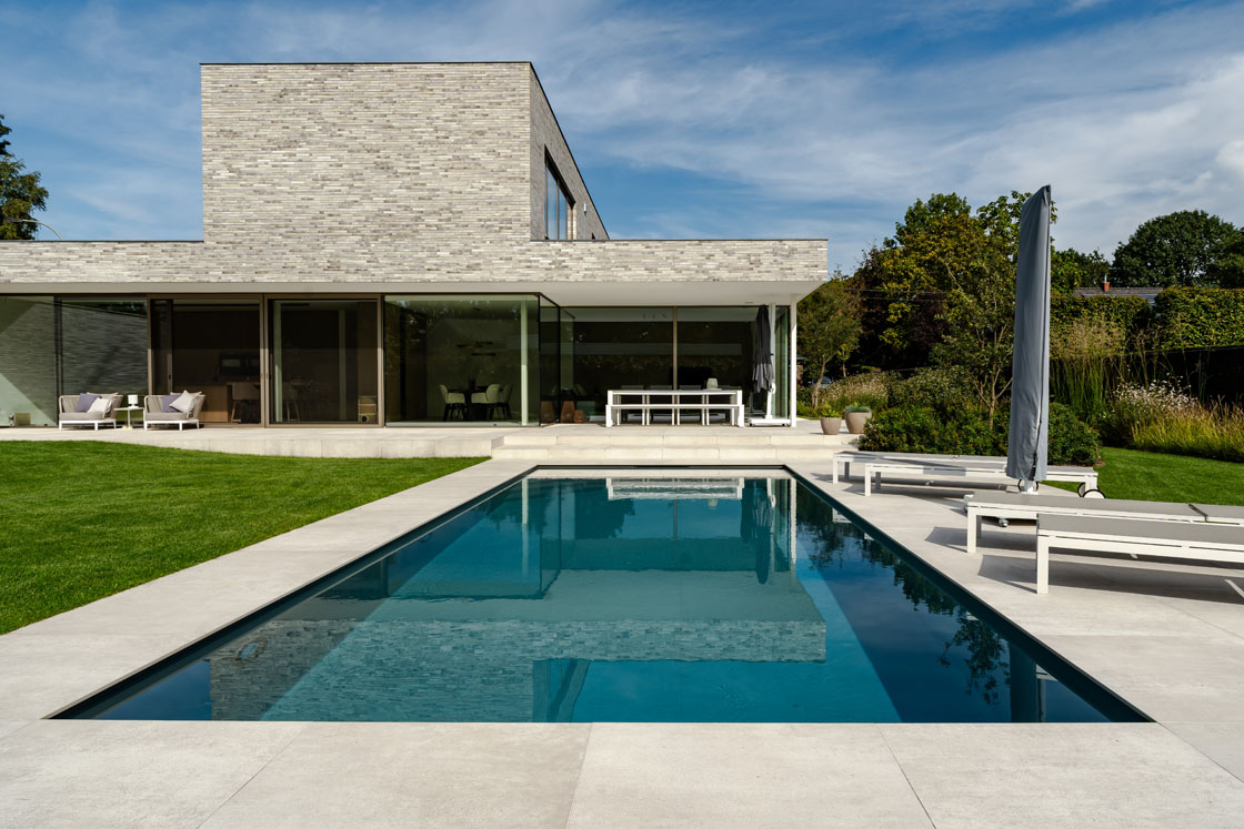 Realizzata a Geel, cittadina belga nelle Fiandre, una villa privata ridefinisce i tradizionali caratteri dell’architettura razionalista attraverso un linguaggio essenziale e curato nei dettagli. La residenza, disposta su due livelli, si articola secondo geometrie primarie e ampie vetrate che inondano di luce gli interni aperti sul giardino, attrezzato con piscina e solarium. Linee decise e un sapiente utilizzo degli spazi a disposizione sono gli elementi alla base di una costruzione dalla forte identità in cui i volumi, rivestiti con una finitura rigorosamente chiara, conferiscono calore alla casa e, al contempo, definiscono gli spazi che la compongono: un’area conviviale, una privata e una zona dedicata ai servizi. Il livello superiore, in particolare, è composto da ampie terrazze che entrano in contatto con il paesaggio verde che circonda l’edificio.